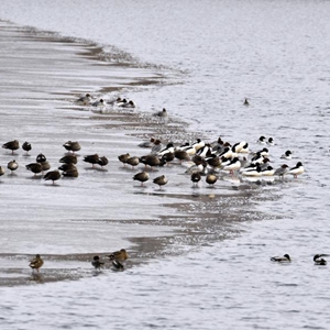 各种鸟类在北京园博湖栖息(2月14日摄)。