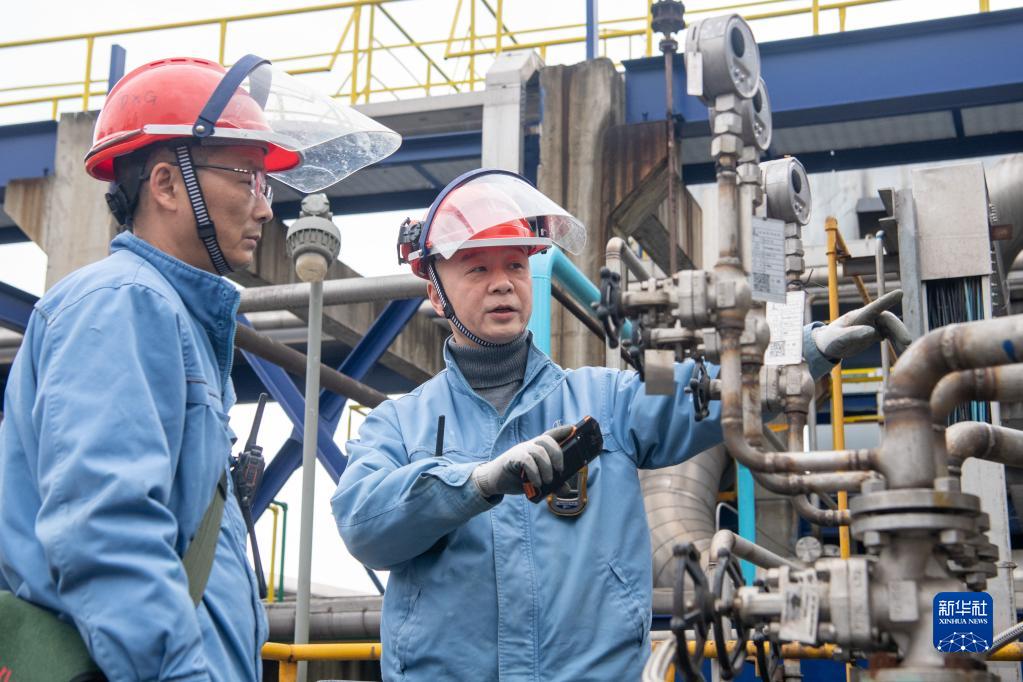 2月14日,在位于重庆市长寿区的中国石化集团重庆川维化工有限公司,工作人员在进行巡检作业。该企业是国内重要的天然气精细化工和新材料企业,近年来积极探索危险废物、固体废物处置过程的精细化管理、技术微改造,使企业向绿色低碳的“无废企业”逐步转型。
