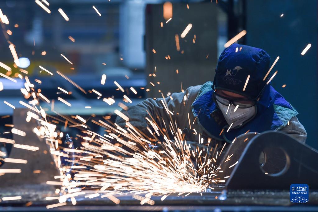 2月14日,工人在位于内蒙古包头市的内蒙古北方重型汽车股份有限公司生产车间打磨零部件。