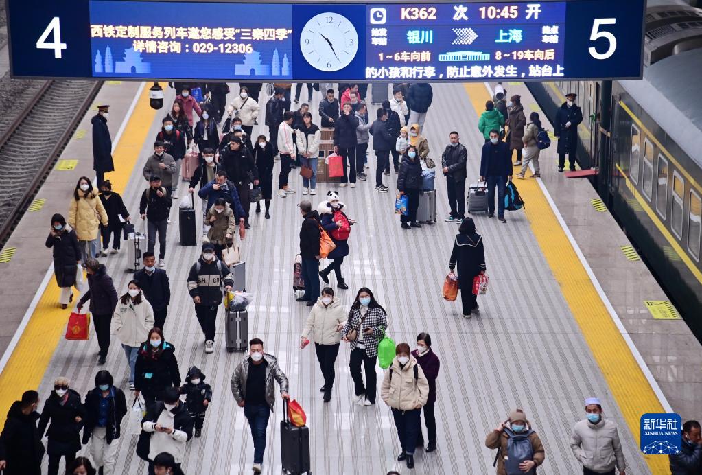 2月15日,乘坐K362次列车的旅客抵达西安站。
