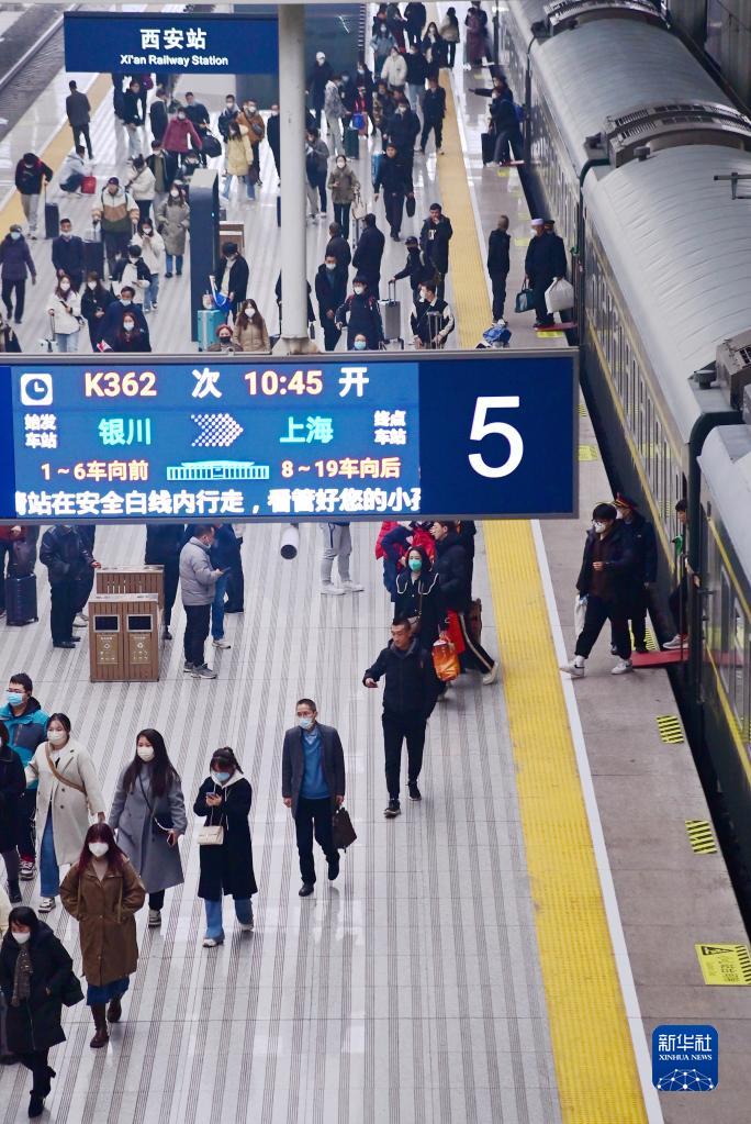 2月15日,乘坐K362次列车的旅客抵达西安站。