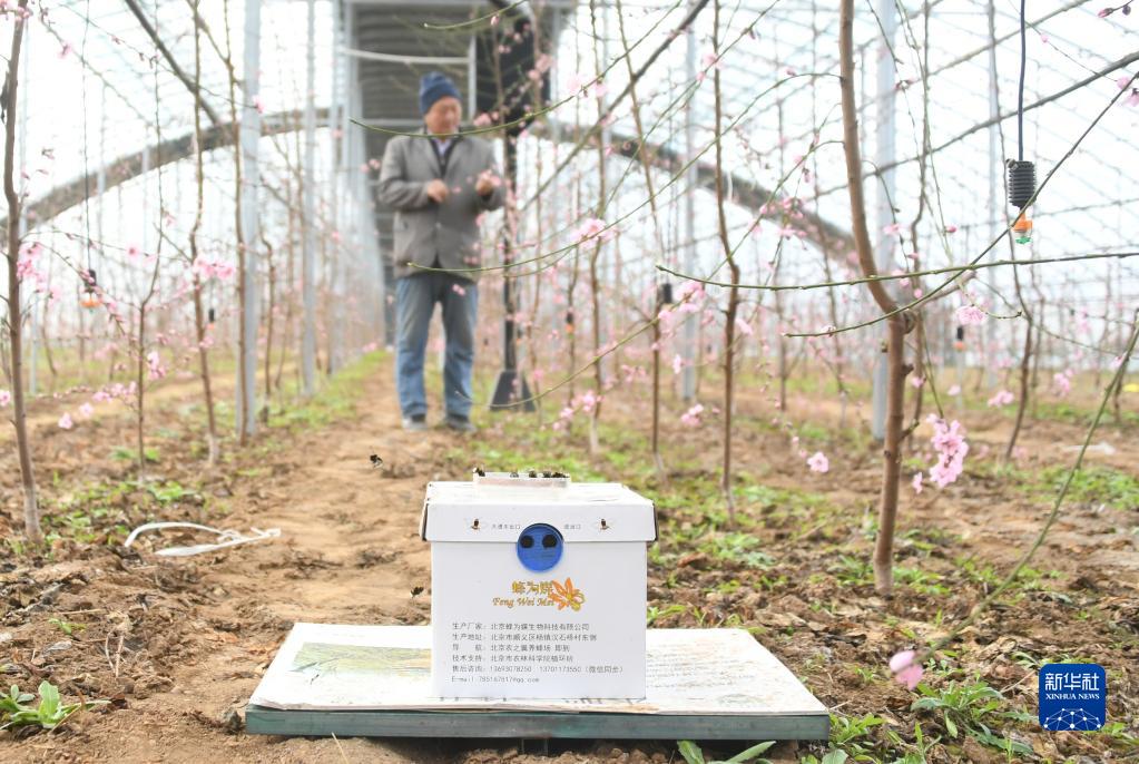 2月15日在北京市峪口镇西营村“未来果园”大桃育苗示范基地拍摄的近期放置在这里的授粉熊蜂蜂箱。