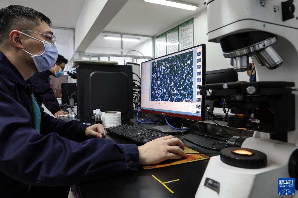 常州第六元素材料科技股份有限公司的技术人员检测石墨烯原料(2月14日摄)。