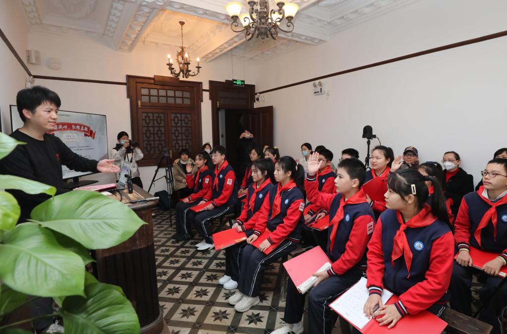 2月15日,在沅江市共华镇福安村,学员们在农业植保无人机操作员培训班上观看无人机起飞演示。