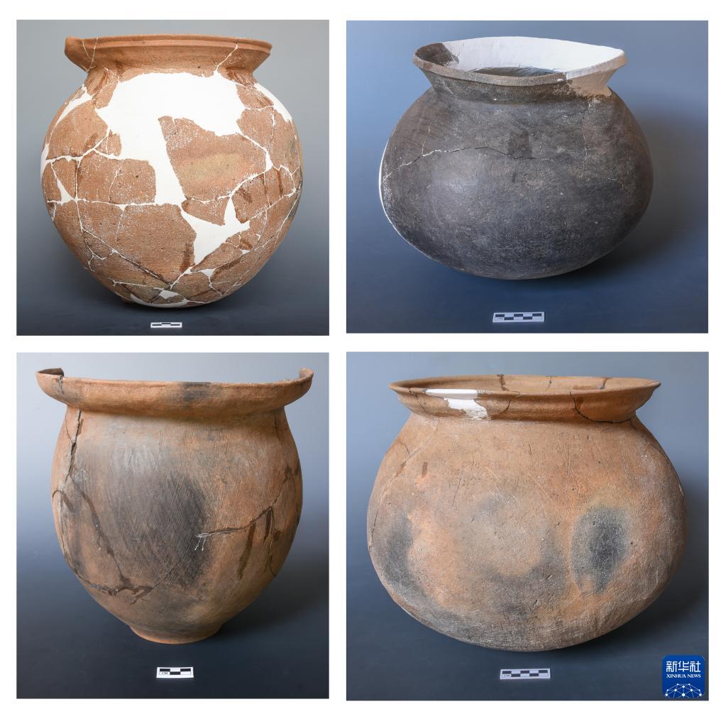 云南晋宁古城村遗址出土的商代瓮棺葬具(资料照片)。