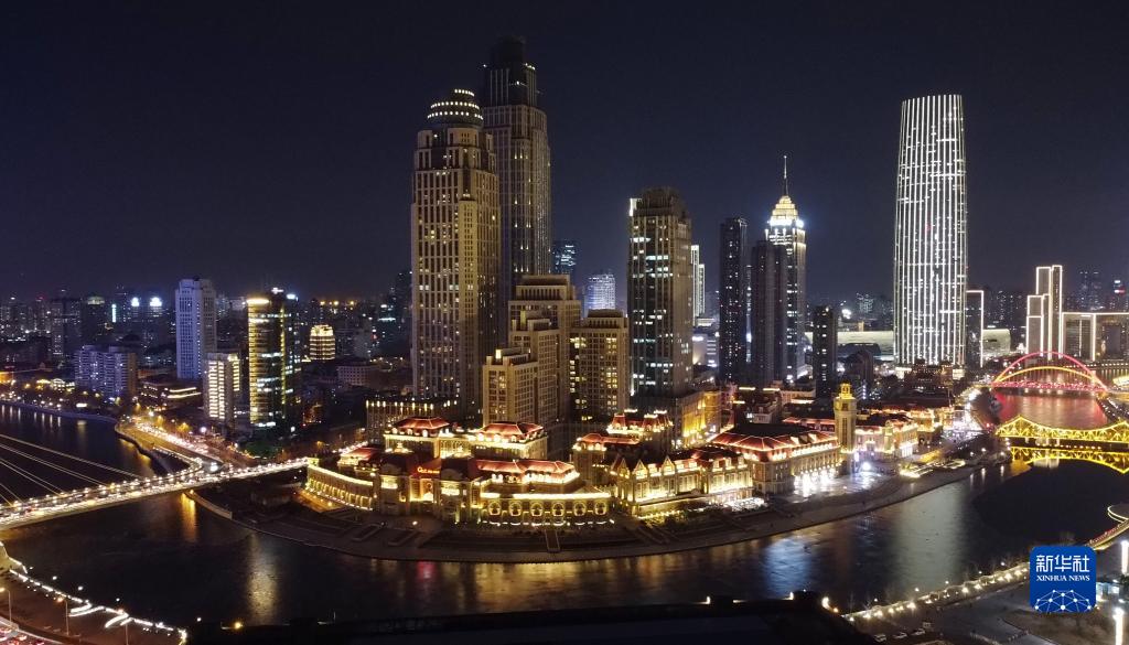 这是2月14日拍摄的天津市和平区津湾广场(无人机照片)。