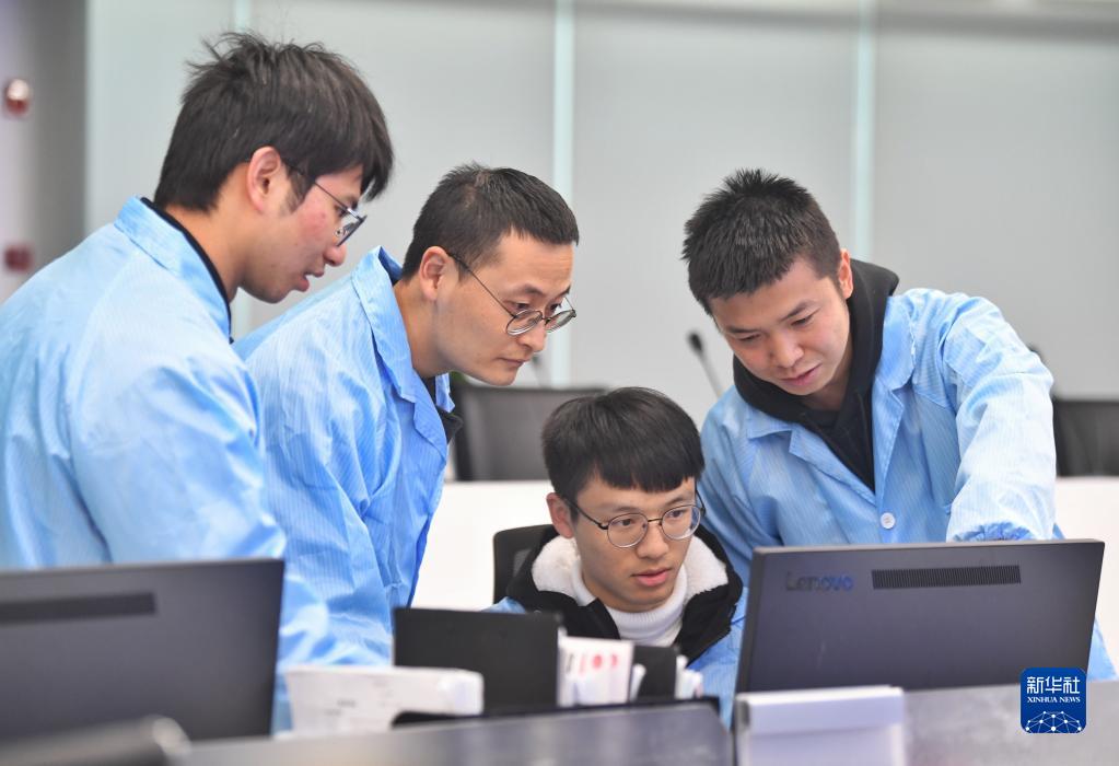 2月14日,国家超级计算成都中心科研人员在讨论二氧化碳电催化还原反应路径计算工作的程序优化方案。