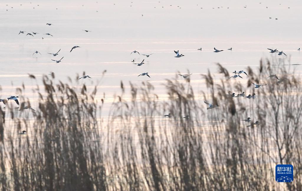 这是2月15日在东平湖湖区拍摄到的野生鸟类。