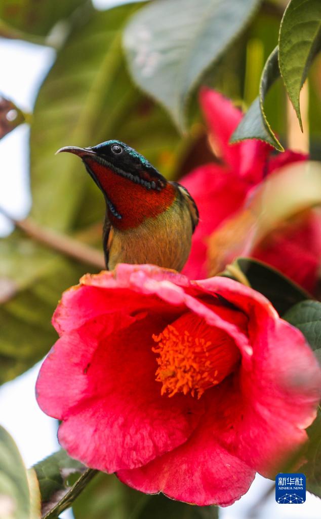 2月15日,在贵州省玉屏侗族自治县朱家场镇茅坡村拍摄的叉尾太阳鸟。