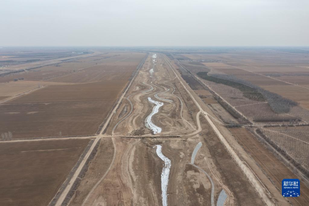 这是雄安唐河河谷郊野公园项目现场(2月15日摄,无人机照片)。