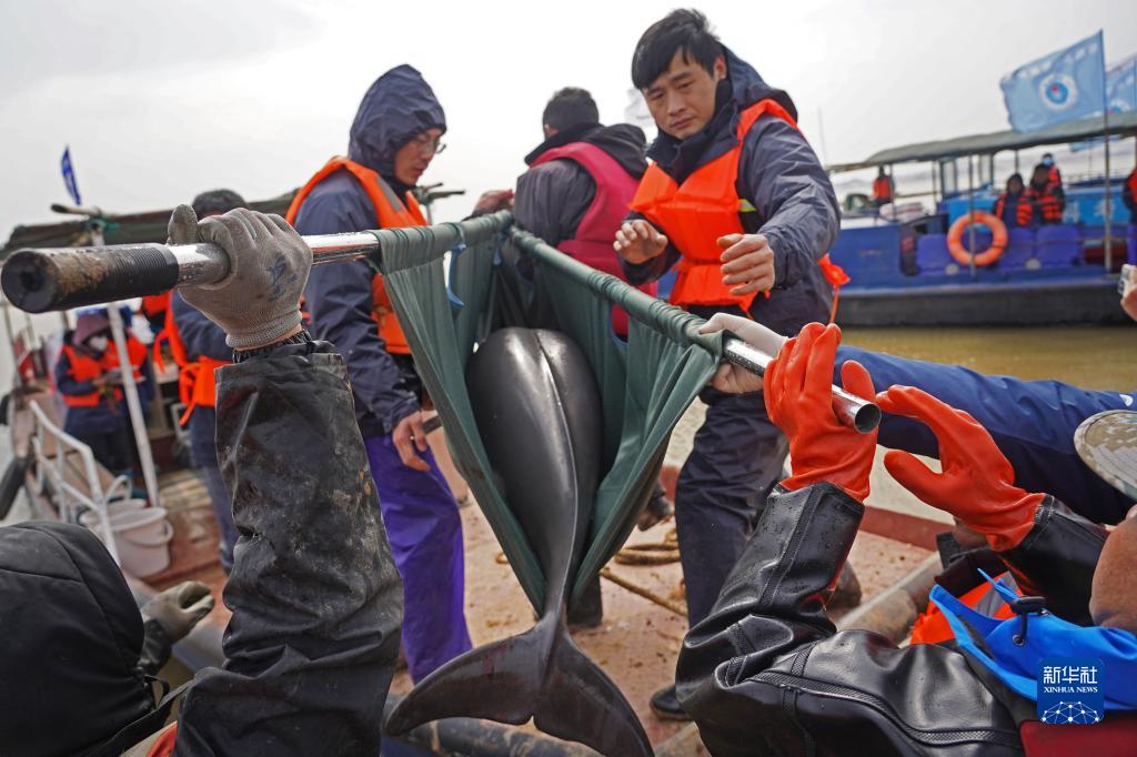 为降低江豚搁浅、食物短缺等潜在风险,促进长江流域种群结构优化,丰富遗传多样性,江西省农业农村厅与中国科学院水生生物研究所等部门,近日在鄱阳湖松门山水域联合开展长江江豚迁地保护行动。经过三天的人工围捕、体检筛选、护理运输,各相关部门联动将两头雄性江豚成功迁移至位于江西省湖口县的鄱阳湖南北港水域,记者用镜头记录下江豚迁移至“新家”的全过程。此次行动计划安全捕捞8头江豚,分别迁移至湖北、安徽和江西湖口的长江江豚迁地保护区。