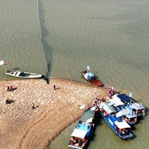 江豚是长江水生生物保护的旗舰物种,国家一级重点保护野生动物,种群极度濒危。由于2022年长江中下游旱情影响,江西鄱阳湖松门山水域砂坑中有超过30头江豚难以游入航道深水区。