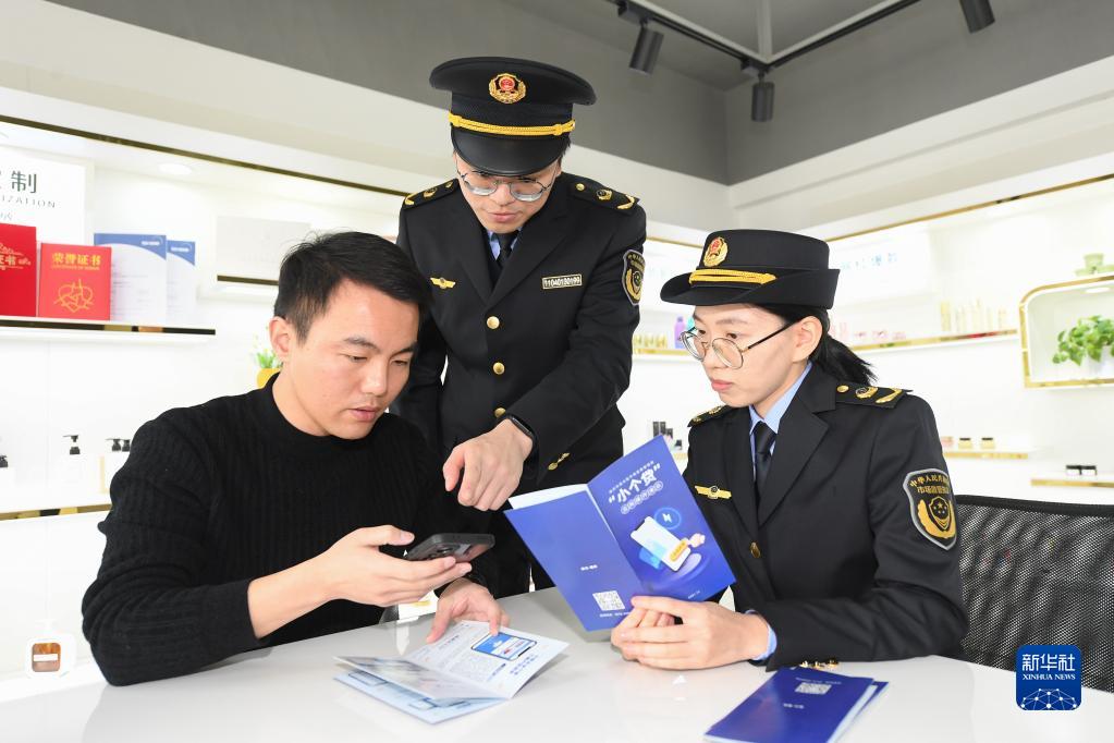 2月16日,在美妆小镇一家小微化妆品企业,市场监管工作人员上门指导企业进行“信用修复”,帮助企业申请信用贷款。