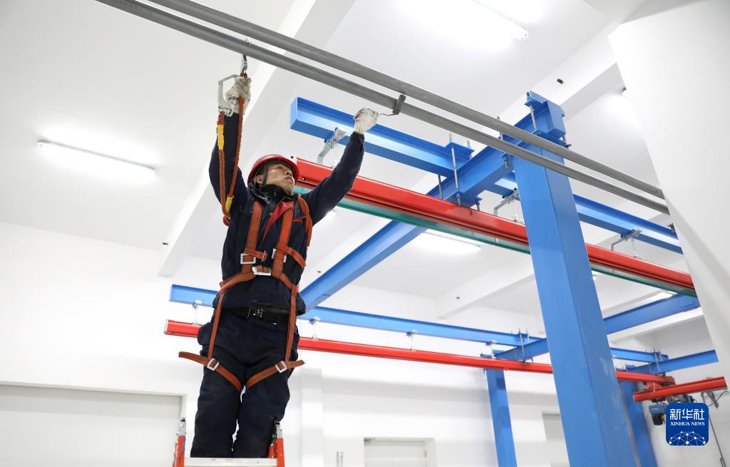 2月16日,工人在即将完工的特高压套管研制基地内粉刷油漆。