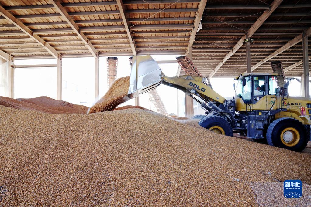 2月15日,在黑龙江鸿展生物能源有限公司,铲车在铲运玉米进行投料。