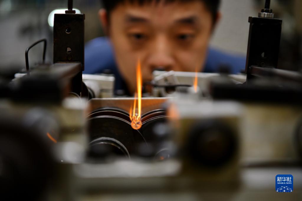 2月16日,在位于献县的沧州来福汽车照明集团灯泡车间,工人在生产线上检查设备运行情况。