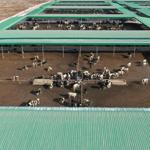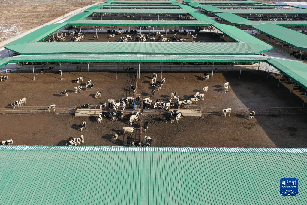 这是2月15日拍摄的古浪县西靖镇肉牛养殖基地内的景象(无人机照片)。