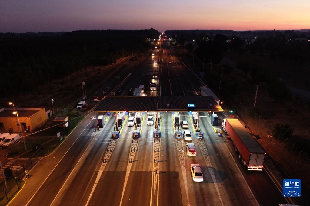 这是2月14日晚拍摄的位于智利比奥比奥大区的5号公路圣克拉拉主收费站。