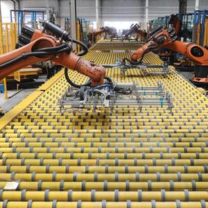 2月17日,秦皇岛一家玻璃企业的机器手在工作中。