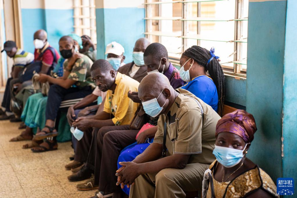 2月13日,人们在中非共和国首都班吉友谊医院等待中国医疗队医生诊疗。