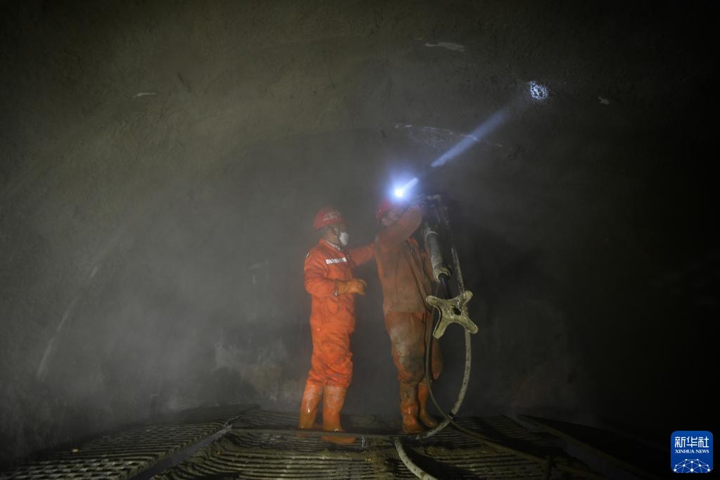 2月7日,施工人员在位于陕西省商洛市商州区的西气东输三线工程陕西段刘村隧道作业。