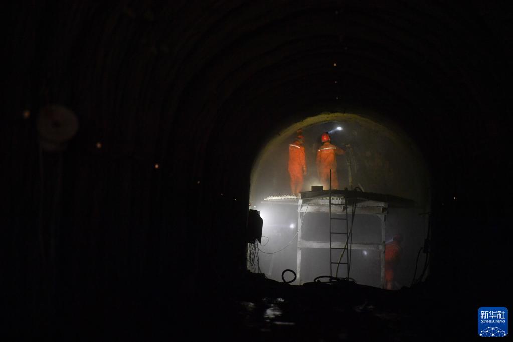 2月7日,施工人员在位于陕西省商洛市商州区的西气东输三线工程陕西段刘村隧道作业。