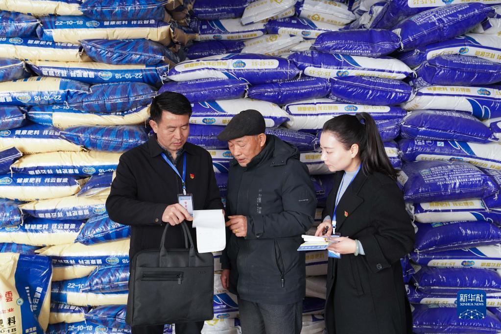 2月16日,江西靖安县纪委监委督查人员在靖安县仁首镇一家农资店询问春耕农资供给、职能部门履职等情况。