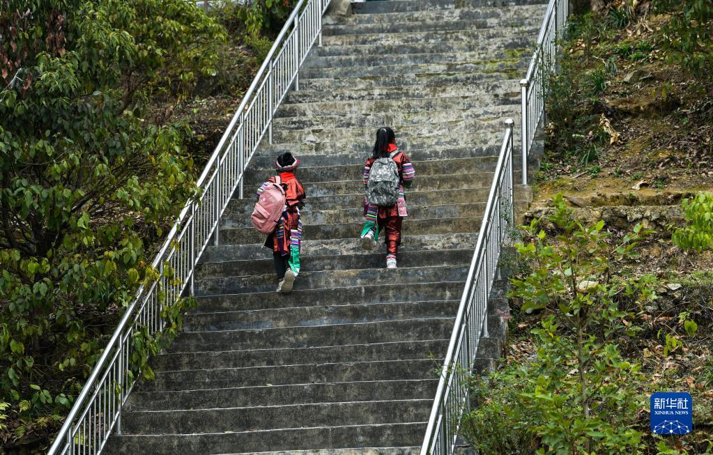 2月16日,贵州省从江县西山镇中寨教学点学生在放学途中。