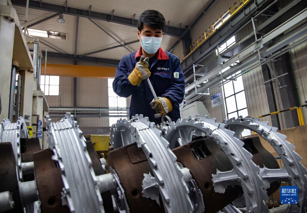 2月16日,在位于陕西省宝鸡市的中国中铁电气化局高铁电气的生产车间,工人们在赶制“简统化”接触网零部件。