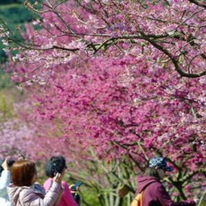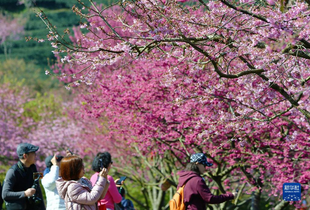近日,福建省漳平市永福镇台品樱花茶园里的樱花迎来最佳赏花期,吸引众多游客观赏。