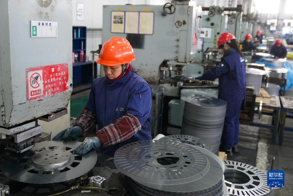 2月16日,工人在位于兴仁镇的南通通达矽钢冲压科技有限公司生产车间忙碌。