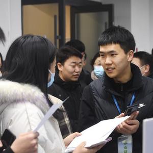 2月17日,求职者在人才集市上查看招聘岗位信息。