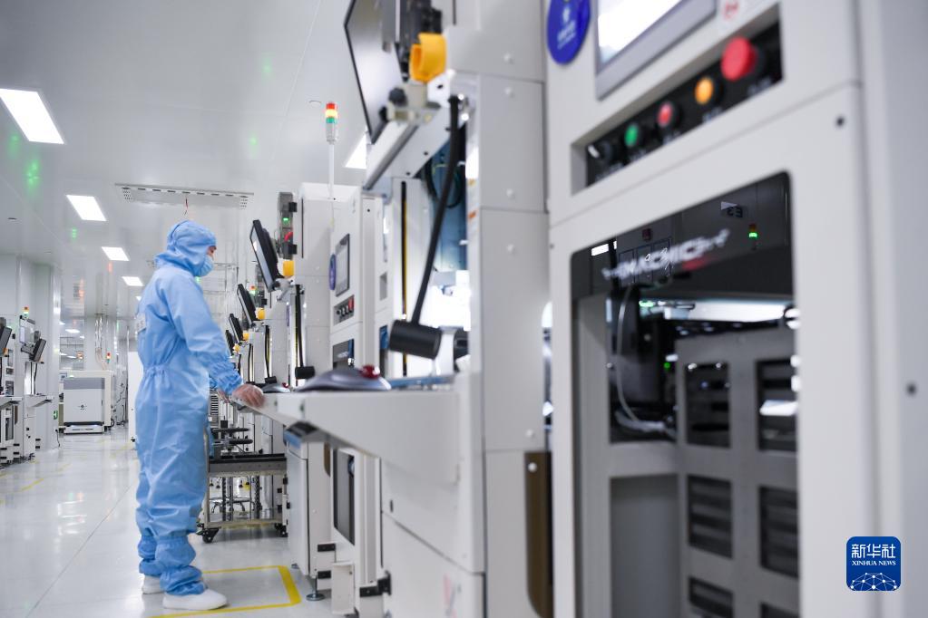 江苏宏微科技股份有限公司工作人员在操作生产设备加工产品(2月15日摄)。该公司生产的电力半导体器件,广泛应用于工业控制、家用电器、电动汽车、新能源领域。