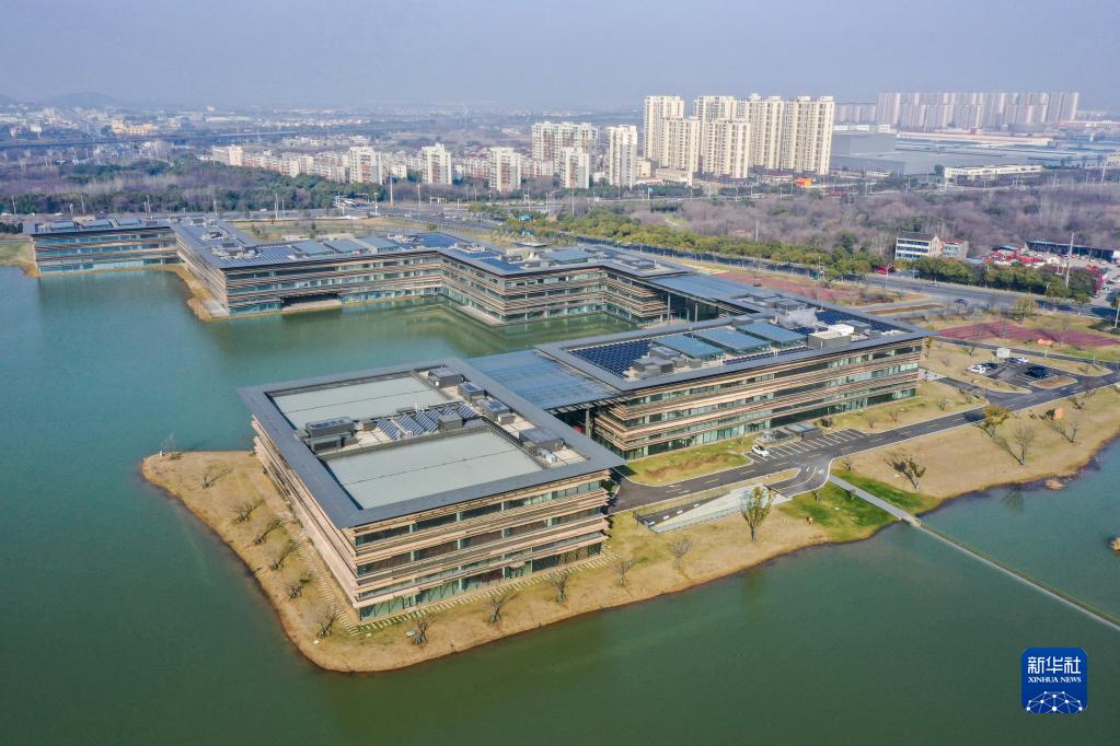 由中国科学院物理研究所与溧阳市合作成立的长三角物理研究中心,致力于先进储能技术产业化,这是研究中心的外景(2月16日摄,无人机照片)。