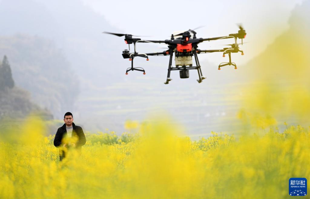早春时节,贵州省六盘水市六枝特区木岗镇16000余亩油菜花竞相绽放。当地村民积极整地、育苗,并利用植保无人机进行春管,一派繁忙景象。