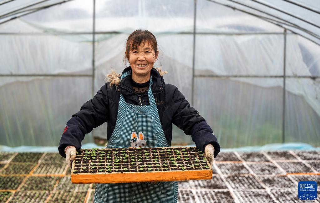 2月17日,村民在贵州省六盘水市六枝特区木岗镇戛陇塘村育苗。