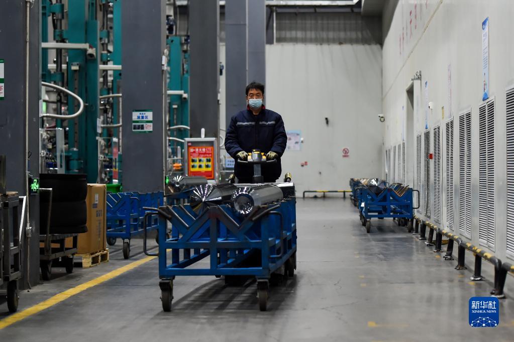 2月17日,在乌海市京运通新材料科技有限公司,工人在搬运硅棒。