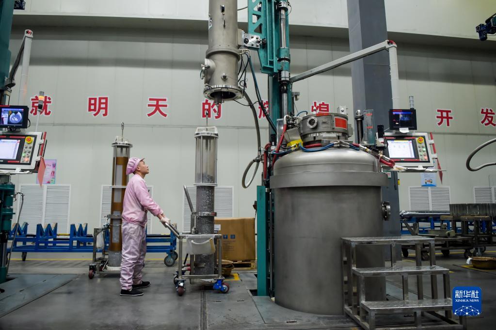 2月17日,在乌海市京运通新材料科技有限公司,工人在生产车间作业。