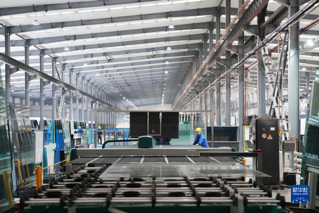 2月17日,在中建材佳星玻璃(黑龙江)有限公司车间内,工作人员在操控数控设备。
