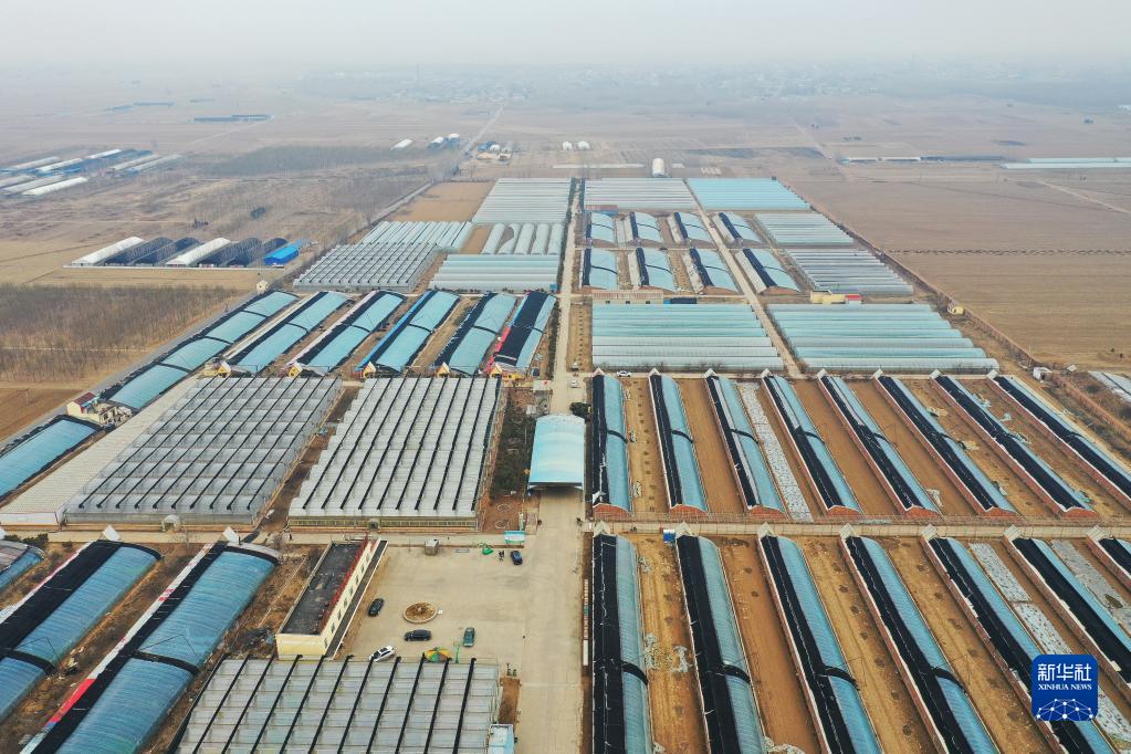 2月17日拍摄的河北省肃宁县绿苑蔬菜专业合作社育苗基地(无人机照片)。