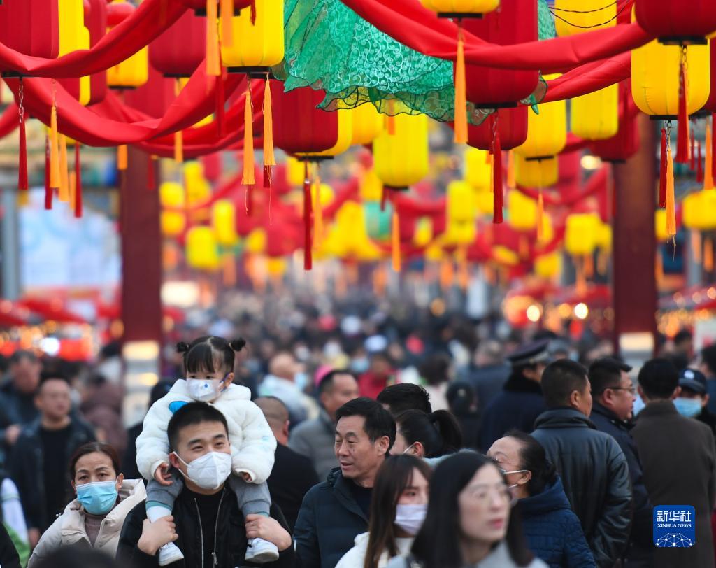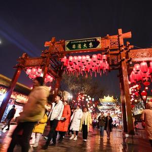 游客在榆林老街的非遗大集游览(2月17日摄)。