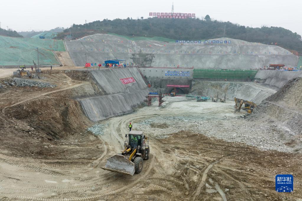 2月18日拍摄的引江补汉工程主体隧洞施工现场(无人机照片)。