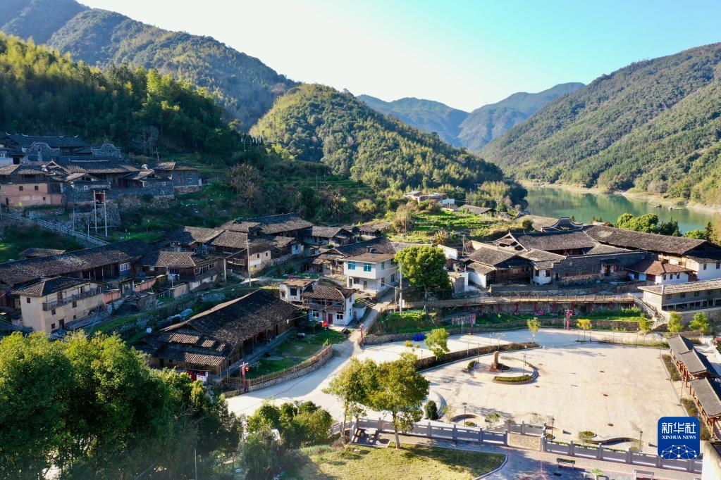 2月17日拍摄的小沧畲族乡七里村畲族古民居(无人机照片)。