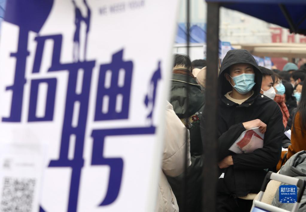 2月18日,在河北省艺术中心文化广场,求职者在招聘活动现场查看岗位信息,寻找工作机会。