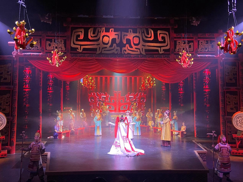 2月17日晚,剧目《殷墟遗梦》在河南安阳殷墟考古文旅小镇上演。该剧目以殷商文化结合小镇旅游业态,作为输出文化内核,打造文化交流平台,成为安阳文化的新名片。新华网 宿鑫 摄