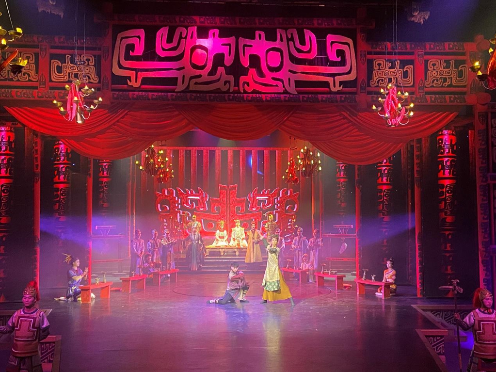 2月17日晚,剧目《殷墟遗梦》在河南安阳殷墟考古文旅小镇上演。该剧目以殷商文化结合小镇旅游业态,作为输出文化内核,打造文化交流平台,成为安阳文化的新名片。新华网 宿鑫 摄