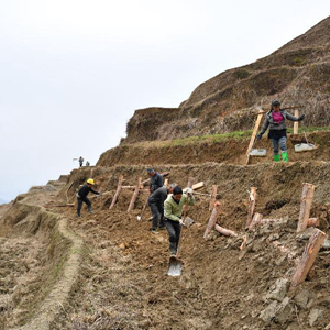 2月18日,村民在紫鹊界梯田夯实梯壁。