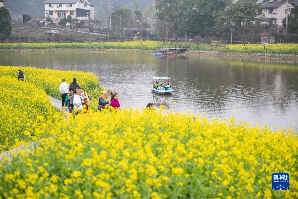 近日,重庆市巴南区二圣镇集体村云林天乡景区的油菜花迎春绽放,吸引众多游客前来观赏。