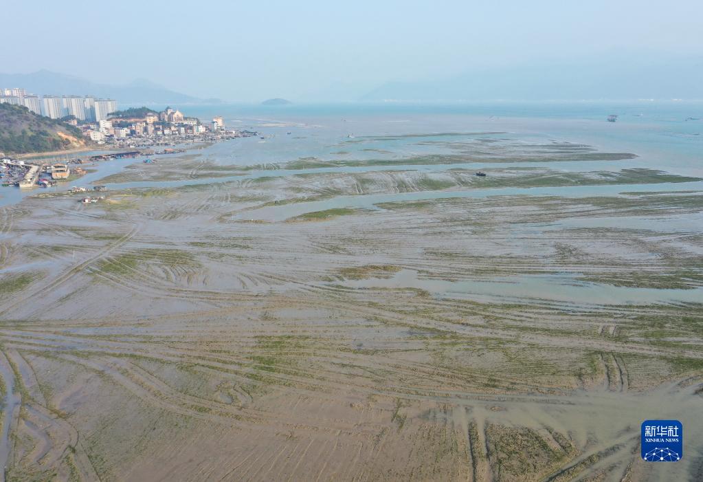这是2023年2月15日在宁德市蕉城区漳湾镇附近拍摄的互花米草整治后的滩涂(无人机照片)。