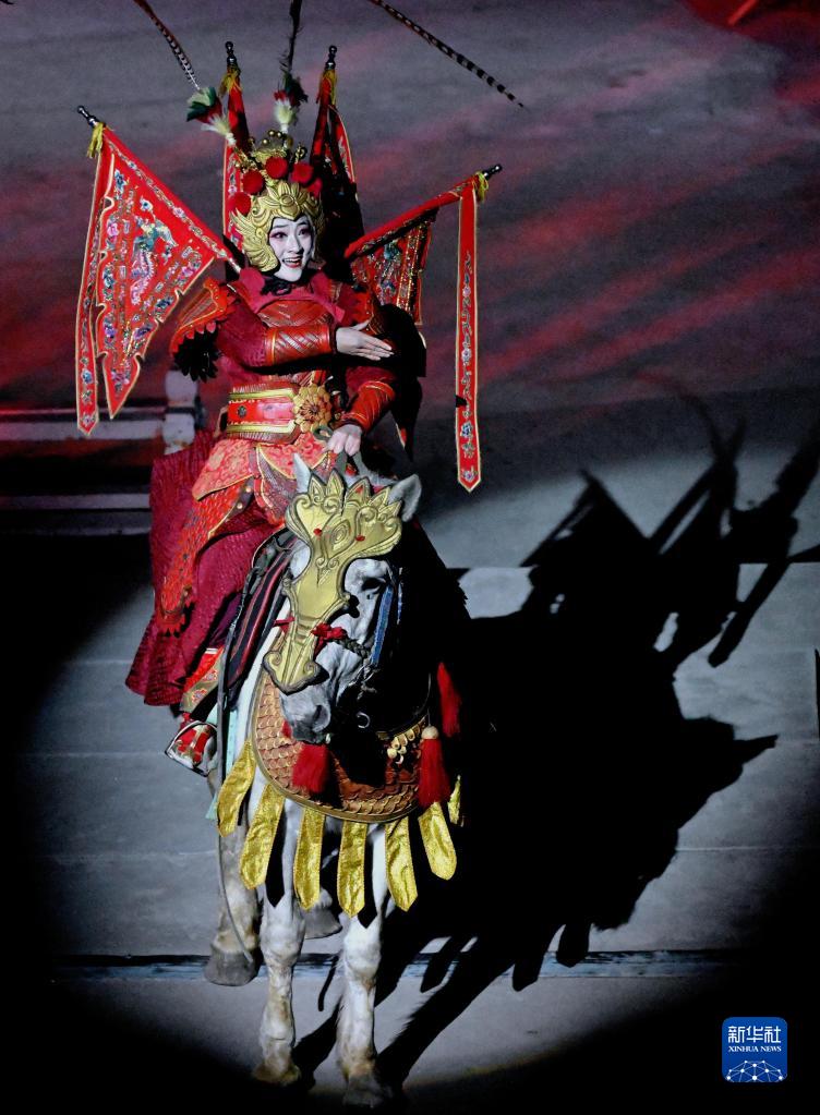 演员在开封清明上河园景区内表演(2月14日摄)。